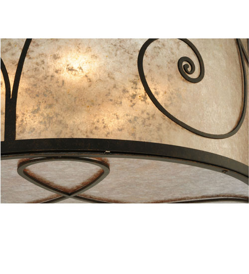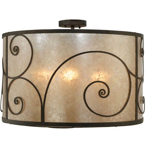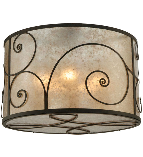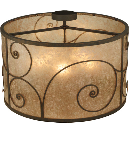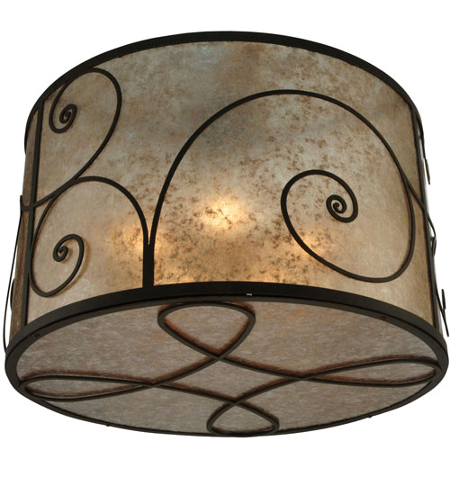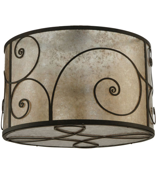 Inspired by the famed Art Nouveau movement in design. This handsome ceiling fixture provides beautiful ambient light gently projected from a stunning Silver Mica shade with a matching bottom diffuser. The gorgeous, drum-styled ceiling fixture is enhanced with a Gilded Tobacco finished scrollwork accents and hardware. Inspired by homes and landmarks from Richmond, Virginia, to Natchitoches, Louisiana, to Asheville, North Carolina. The Granada Flushmount is featured in our American-made, American-designed, handcrafted Art Nouveau Lighting Collection and manufactured in Yorkville, New York. UL and cUL listed for dry and damp locations.