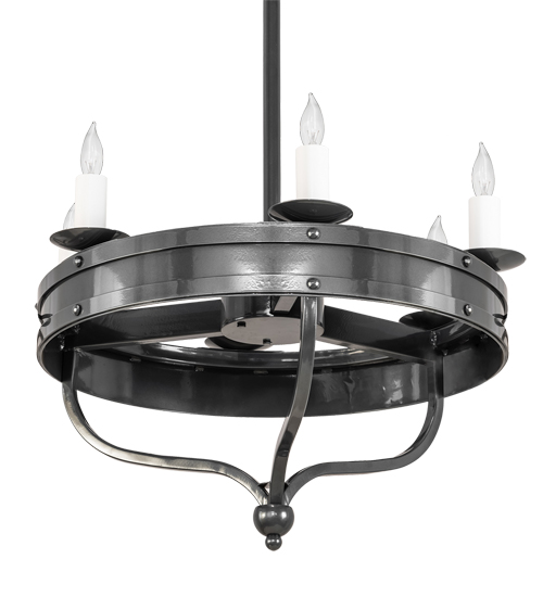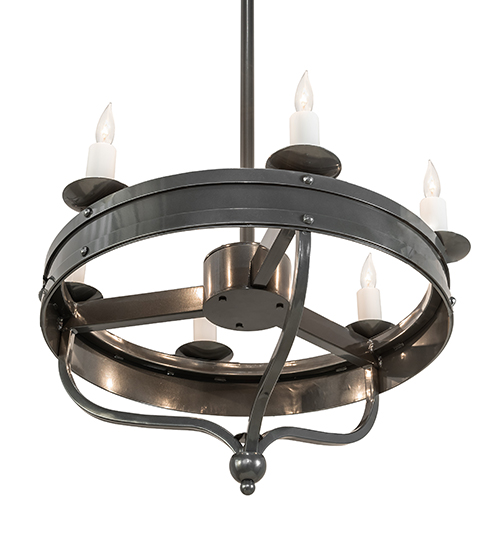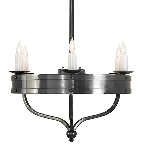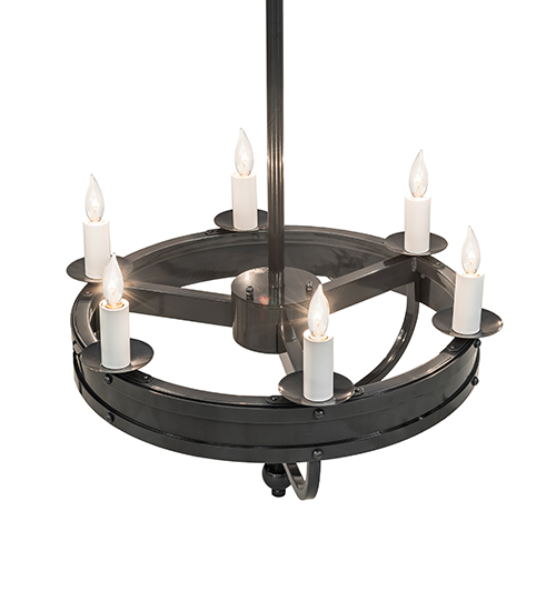 Custom crafted for the King or Queen in your castle, Parnella presents a touch of warm opulence blended with handsome styling. This chandelier offers an extraordinary design as sparkling illumination evokes from 6 White faux candlelights that adorn the perimeter of this solid ring with arms and accents in a Charcoal Gray finish. This fixture will make a design statement as a centerpiece in any room including an entryway, dining room, lobby, conference room and other locations. Handcrafted by highly skilled artisans in our 180,000 square foot manufacturing facility in Yorkville, New York. Available in custom sizes, styles and finishes. UL and cUL listed for dry and damp locations.