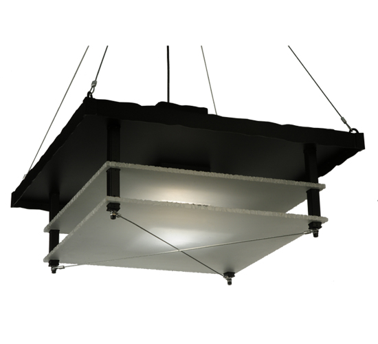 Energized by inventions that advocate reason, capitalism and individualism, Atlantis takes a contemporary approach to an industrial design. This pendant deploys thick layers of Contrail Mist Idalight with a Satin finish, connected with columns and hardware that are featured in a Blackwash finish. Wire suspensions provide additional support and a decorative touch. The fixture is custom crafted in the USA. Custom colors, styles, sizes and dimmable energy efficient lamping options such as LED are available. The pendant is UL and cUL listed for damp and dry locations.