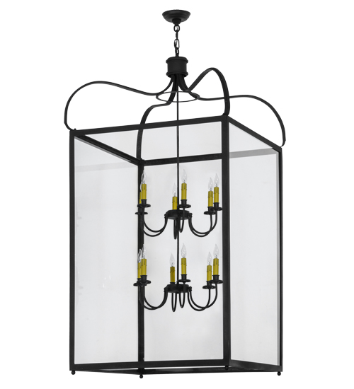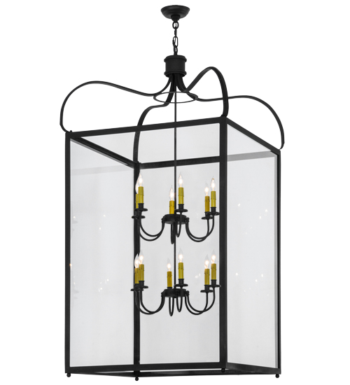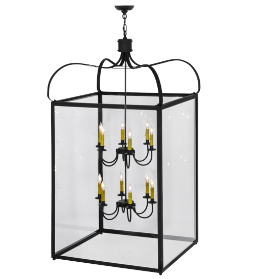 A sophisticated architecturally styled fixture is designed with a pizazz that is unique, fresh and stylish. Give your decor an extra edge with this breathtaking fixture, which is highlighted with a solid metal structure that surrounds a Clear Glass Lens encasing 12 Amber faux candlelights. The hardware and frame are featured in a handsome Charred Iron finish. Handcrafted in the USA, Rennes is available in custom sizes, styles and finishes, as well as dimmable energy efficient lamping options. The 30-inch square pendant is UL and CUL listed for damp and dry locations.