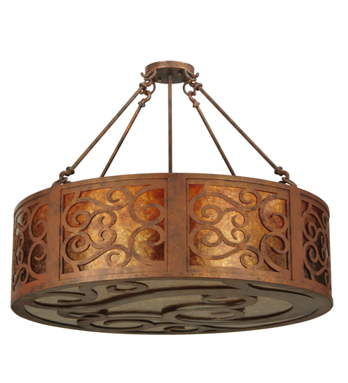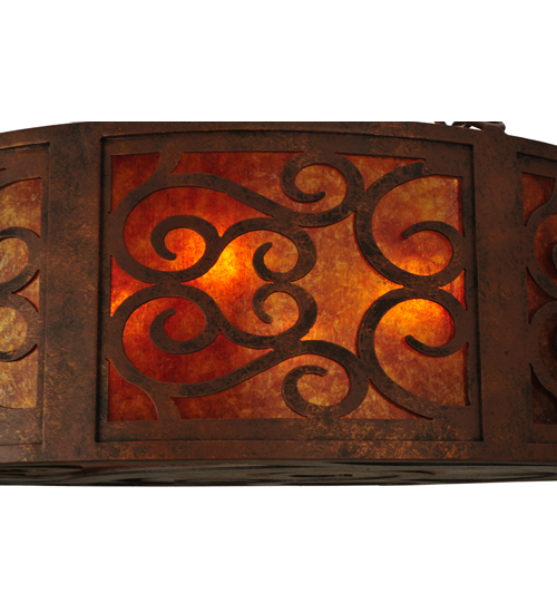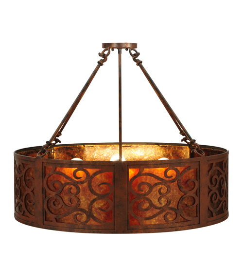 A touch of warm opulence is blended with elegant scroll-like styling. The Dean Pendant offers a lovely transitional style, which is handcrafted with decorative accents and hardware featured in a stunning Antique Rust finish. The fixture integrates an Amber Mica diffuser, which is enhanced with beautiful ambient illumination. Custom crafted in the USA, this fixture is available in custom sizes, styles, colors and dimmable energy efficient lamping such as LED. The 30-inch pendant is UL and cUL listed for damp and dry locations.