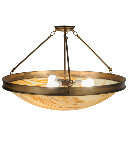 Offering an elegant look for any interiors, this stunning ceiling fixture features a Travertine Idalight shade, which is enhanced with a frame and hardware offered in an Antique Copper finish for a classic look. This fixture is ideal for illuminating hallways, living spaces and other rooms in both residential and commercial environments. Dionne is handcrafted by highly skilled artisans in Upstate New York. Options include dimmable energy efficient lamping, as well as custom sizes, styles and colors. The 30-inch wide fixture is UL and cUL listed for dry and damp locations.