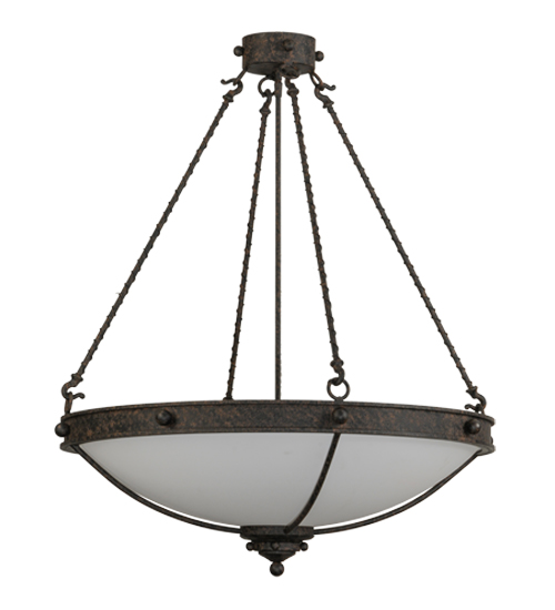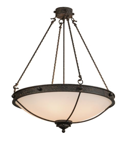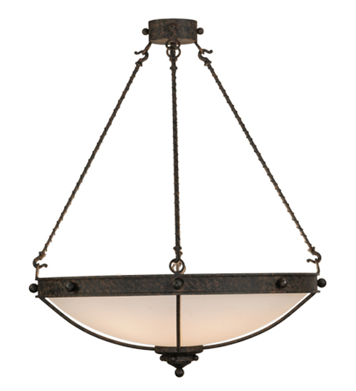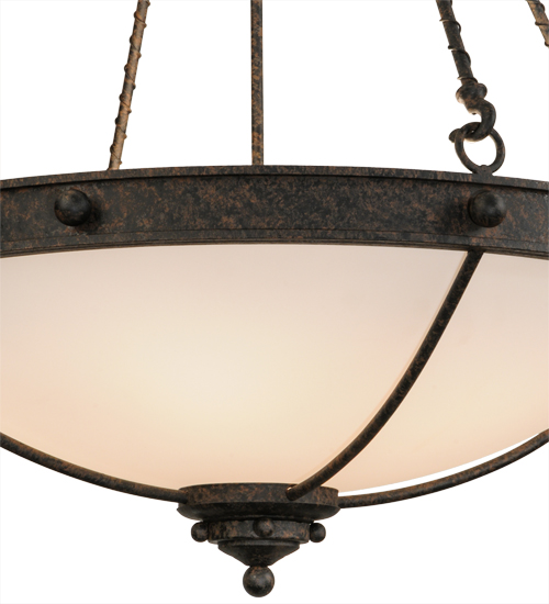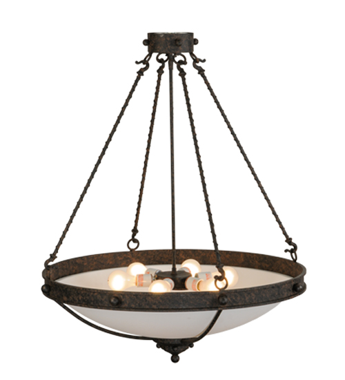 From Manhattan to LA and everywhere in between, this fixture evokes an eclectic design flair that will enhance any dining area, conference room, lobby or restaurant. An appealing Statuario Idalight bowl diffuses soft ambient light while the frame and suspension rods with rope-like accents are featured in a Coffee Bean finish. Handcrafted by highly skilled artisans in our manufacturing facility in Yorkville, NY. Custom colors, styles and sizes are available. Energy efficient lamping options such as LED are available. The 30-inch wide fixture is UL and cUL listed for dry and damp locations.