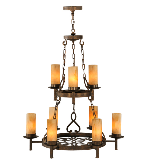 Blending elegant styling with a rich distinguished look, this Newcastle chandelier features 2 Gilded Tobacco decorative tiers that provide timeless beauty and generous illumination. Heavy chains support the rings from the ceiling. A total of 9 Tawnyrock Idalight Cylindres are perched on bobeches embraced by solid rings. The overall height of this pendant ranges from 46 to 105 inches as the chain length can be easily adjusted in the field to accommodate your specific lighting application needs. Handcrafted in our 180,000 square foot manufacturing facility in Yorkville, New York. Shade colors, sizes and metal finishes can be customized to your needs. UL and cUL listed for dry and damp locations.