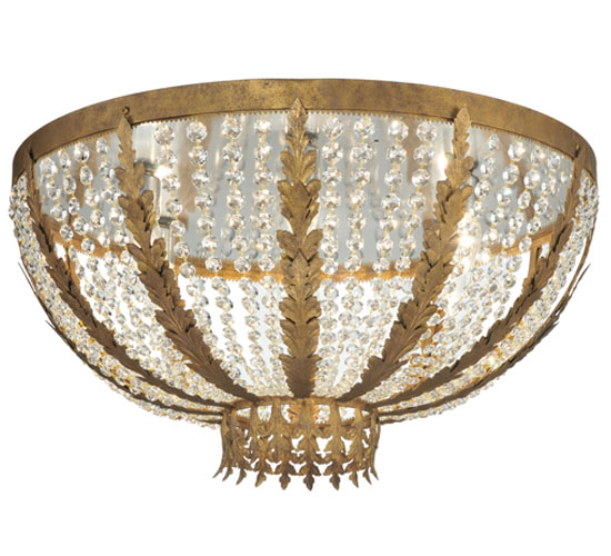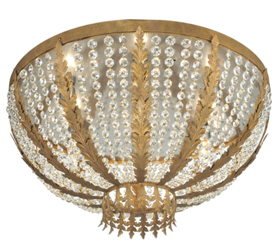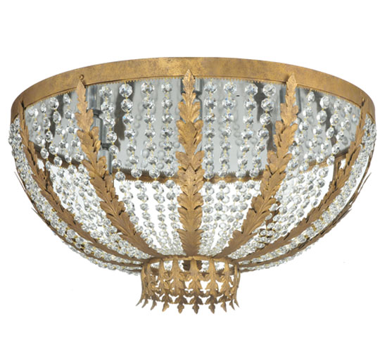 Bejeweled with lovely garlands of faceted crystal beads that emanate brilliant radiance and luxury for any setting. This elegant ceiling fixture features a Pompeii Gold finish and is adorned with Acanthus leaf accents. Custom crafted in our 180,000 square foot manufacturing facility in Yorkville, New York. Metal finishes, crystal designs and fixture sizes can be customized to meet your lighting needs. UL and cUL listed for dry and damp locations.