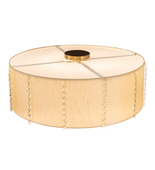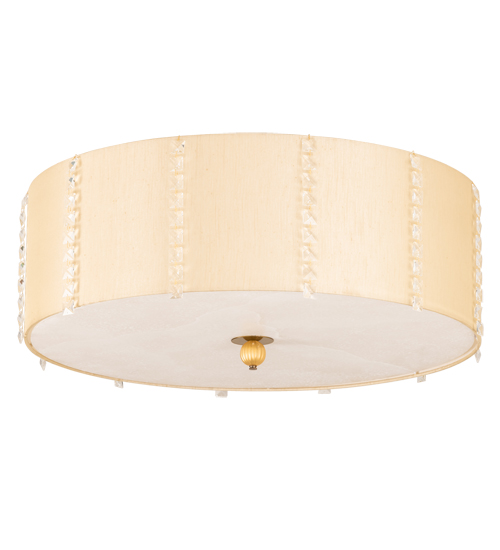 A unique architecturally designed ceiling fixture. Cilindro Lujoso features a Natural Silk shade with a Statuario Idalight top diffuser and a Yuma Idalight bottom diffuser. The finial is featured in Brass, White and Gold powder coat finishes. Handmade by highly skilled artisans in our 180,000 square foot manufacturing facility in Yorkville, New York. Custom sizes, styles, and colors are available. UL and cUL listed for dry and damp locations however we do not recommend installing it in spaces that experience a large amount of moisture due to the fabric shade.