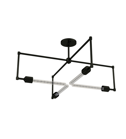 A striking geometric lighting design. Pronograde is an architectural structure with a crossbar with multiple arms embracing filament-styled lamps for a unique decorative look. The frame and hardware are finished in Mirror Black. This handsome ceiling fixture is perfect for modern homes, offices, and labs, from Collierville, Tennessee, to North Wales, Pennsylvania, to San Diego, California. The Pronograde Semi-Flushmount is featured in our American-designed handcrafted Industrial Lighting Collection and manufactured in Yorkville, New York. The fixture is UL and cUL listed for dry and damp locations.