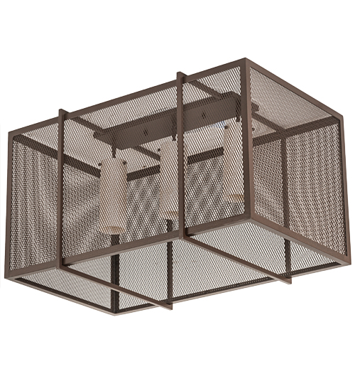Discover a unique architectural look and industrial lighting design that is fresh and stylish. Kitzi Golpe features a dramatic caged frame that reveals 3 Fleshtone Idalight Cylindres illuminating from within. The solid metal hardware, frame and grill are featured in a stunning Cafe Noir finish. The alluring fixture is ideal for illuminating counters, islands, conference rooms, entryways and other residential and commercial spaces. Handcrafted by highly skilled artisans in the USA, this dramatic fixture is offered in a myriad of custom lamping options such as LED, as well as sizes, designs and finishes. The 32-inch long fixture is UL and cUL listed for damp and dry locations.