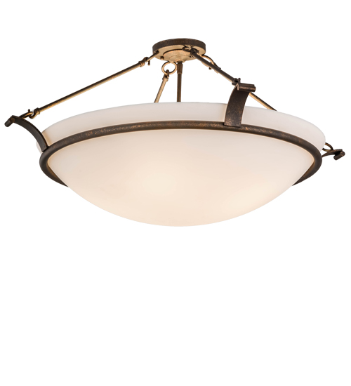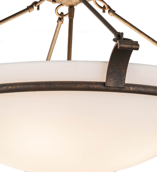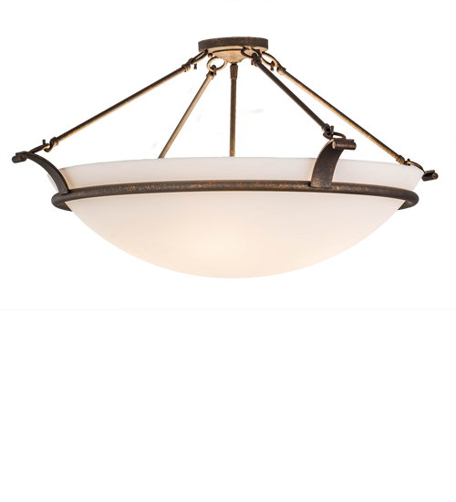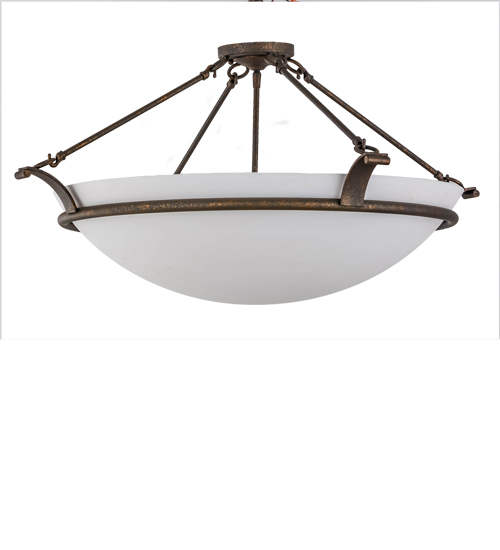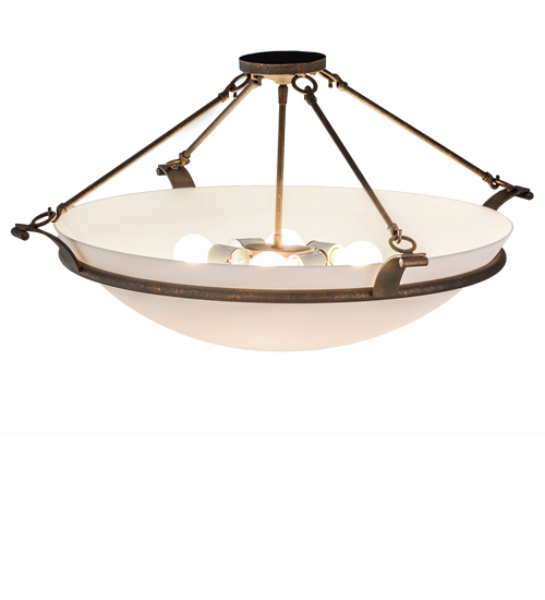 Bring a stunning transitional look into your home or commercial space with this Almeria ceiling fixture. Designed with a lovely Statuario Idalight diffuser, this 32-inch wide ceiling fixture is enhanced with hardware and a uniquely designed frame featuring a warm Gilded Tobacco finish. This fixture is handcrafted in the USA. Custom styles, sizes and designs are available. Dimmable energy efficient lamping options are available. The fixture is UL and cUL listed for damp and dry locations.