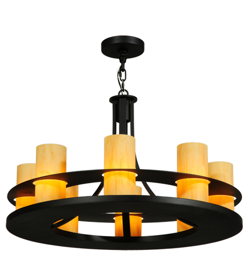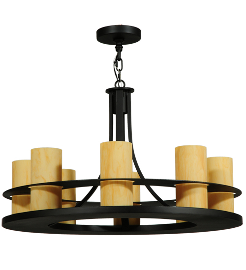 Created with a lower sturdy lower ring and a thinner upper ring, the Arion Pendant 32 beholds 8 Statuario Idalight Cylindres. The handsome hardware is featured in a hand-applied Textured Black finish. Handmade in our manufacturing facility in Yorkville, NY. UL and CUL listed for dry and damp locations, the 32-inch wide pendant is available in custom sizes, styles and finishes. Dimmable energy efficient lamping options such as LED are available.