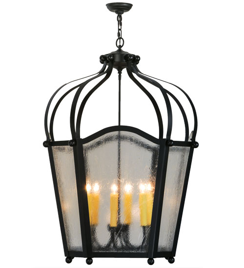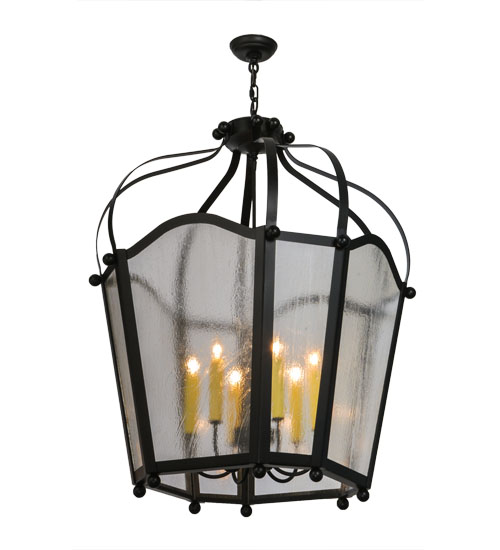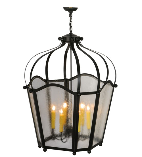 Utilizing a blend of timeless craftsmanship and classic design, the ever-popular Citadel brings home unsurpassed quality and shapely appeal. Evoking a dramatic effect, beautiful ambient light is evoked through Clear Seeded Glass which reveals a 6-light faux candelabras featured within this pendant. Citadel is enhanced with a dramatic design and frame featured in a Blackwash finish. The fixture is handcrafted by skilled artisans in our American factory in Upstate New York. Custom options include various sizes, colors, designs and dimmable energy efficient lamping. UL and cUL listed.
