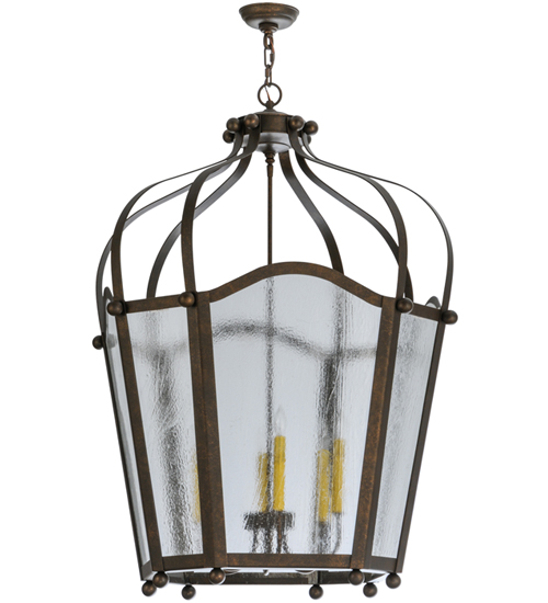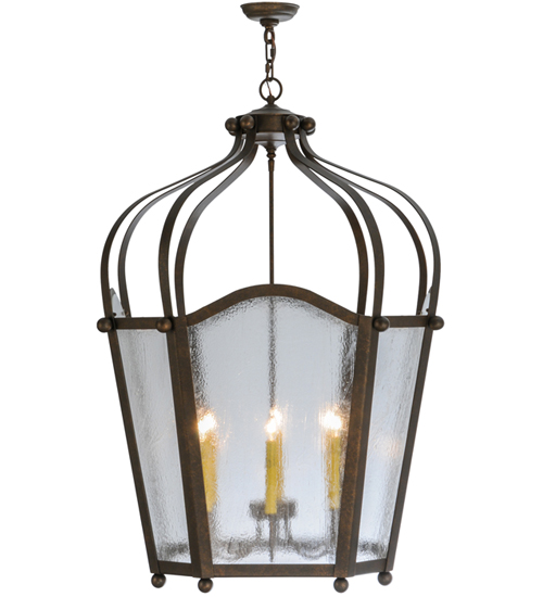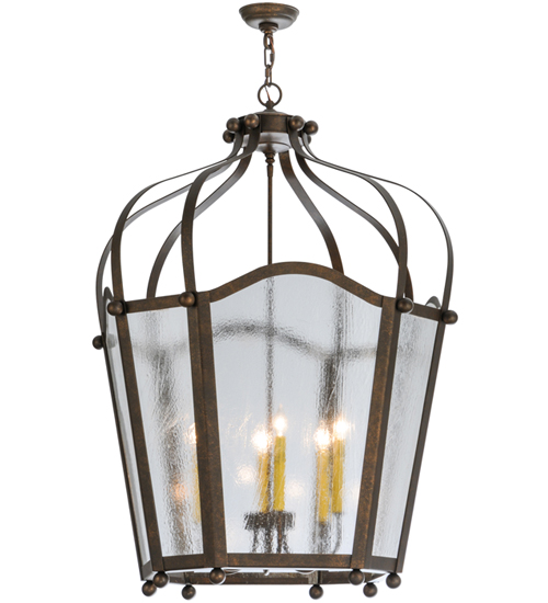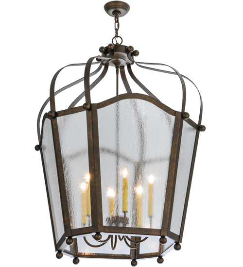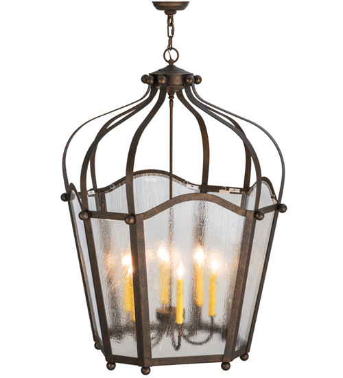 Utilizing a blend of timeless craftsmanship and classic design, the ever-popular Citadel brings home unsurpassed quality and shapely appeal. Evoking a dramatic effect, beautiful ambient light is evoked through Clear Seeded Glass which reveals a 6-light faux candelabra featured within this pendant. Citadel is enhanced with a dramatic design and frame featured in a Gilded Tobacco finish. The fixture is handcrafted by highly skilled artisans in our 180,000 square foot manufacturing facility in Yorkville, New York. Custom options include various sizes, colors, designs and dimmable energy efficient lamping. UL and cUL listed for damp and dry locations.