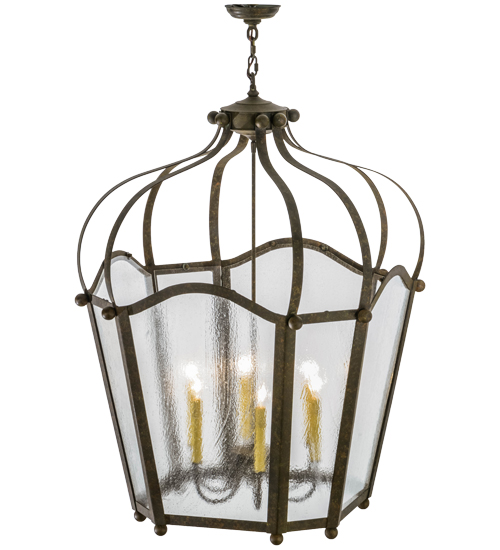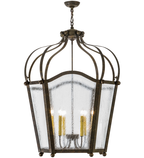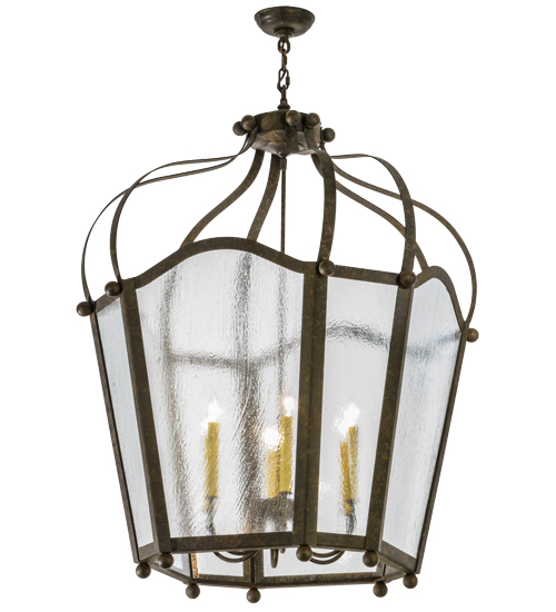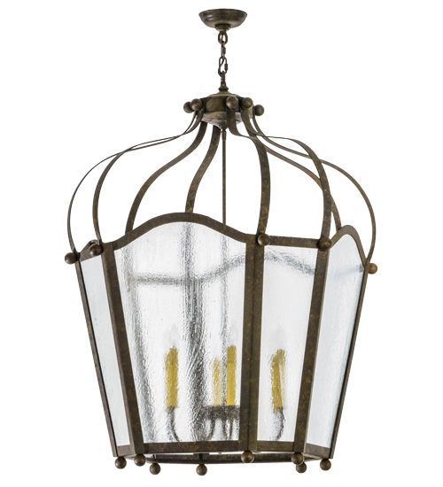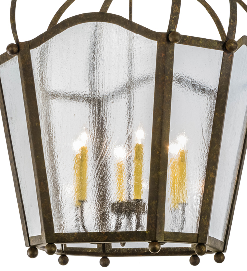 Utilizing a blend of timeless craftsmanship and classic design, the ever-popular Citadel brings home unsurpassed quality and shapely appeal. Evoking a dramatic effect, beautiful ambient light is evoked through Clear Seeded Glass which reveals a six-light faux candelabra featured within this pendant. Citadel is enhanced with a dramatic design and frame featured in an Organic Rust finish. The fixture is handcrafted by skilled artisans in our 180,000 square foot manufacturing facility in Yorkville, New York. Custom options include various sizes, colors, designs and dimmable energy efficient lamping options such as LED. This pendant is UL and cUL listed for damp and dry locations.