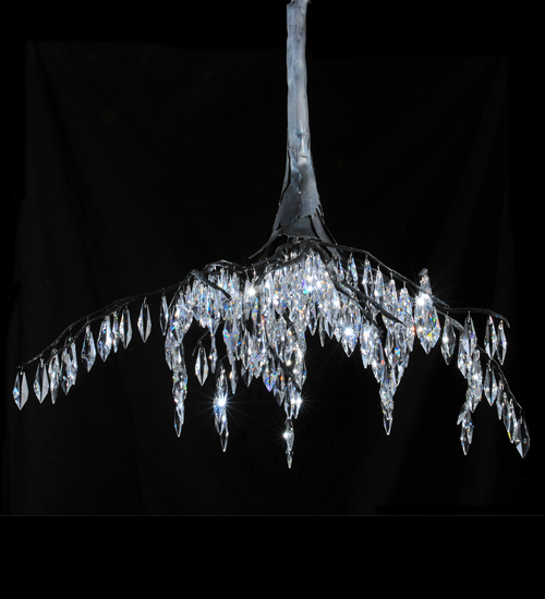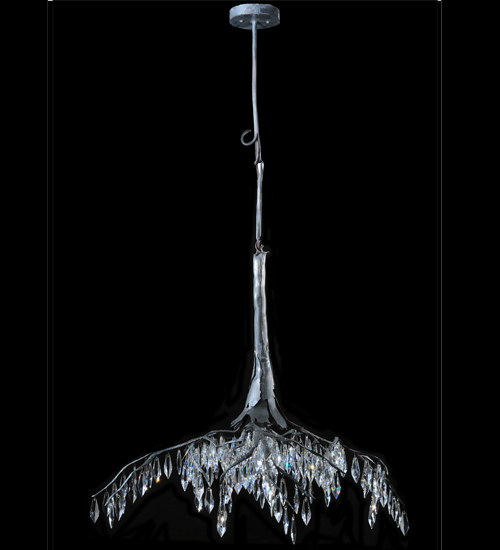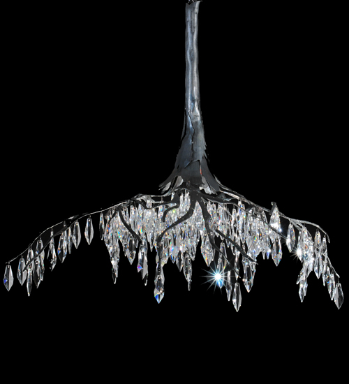 Icy water splashing against small snow covered boulders in a half frozen creek inspired this Stillwater Crystal Chandelier, crafted with its steel roots and trunk, hand-finished in Wrought Iron. Bring a rustic look into your home with this stunning ceiling fixture. Let icicle-like crystals hanging down from the tuberous roots sparkle like a crisp winter ray of sun through a dangling icicle. It is custom crafted by artisans in the firm’s manufacturing facilities in Yorkville, New York.