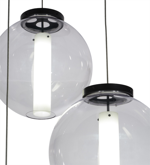 A cool contemporary look. 3 Crystal Idalight orbs reveal stylish Statuario Idalight Cylindres in a chic cascading pendant lighting design. The fixture is enhanced with hardware featured in a Black Textured finish. Ideal for a variety of rooms in residential and commercial environments. The pendant operates with ‘s integral LEDs to deliver robust illumination, energy savings, minimal maintenance and long life. Custom colors, styles and sizes are available, as well as dimmable lamping options such as LED. The fixture is UL and cUL listed for damp and dry locations.
