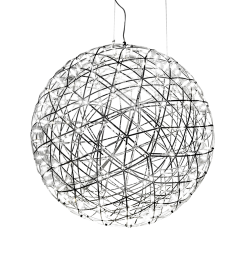 A truly global design. This complex configuration features Polished Stainless Steel frame and hardware. Geosphere features a complex illuminating design with over 162 Integral LEDs that project beautiful ambient illumination for energy savings and long life. The overall height of the pendant ranges from 37 to 151 inches as the aircraft cable length can be easily adjusted in the field to accommodate your specific lighting application needs. Custom options available. Handcrafted in our 180,000 square foot manufacturing facility in Yorkville, New York. UL and cUL listed.