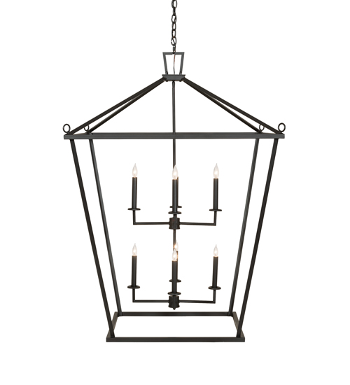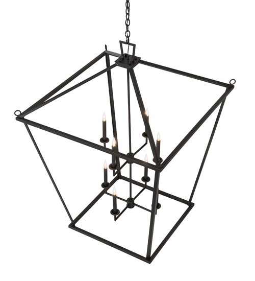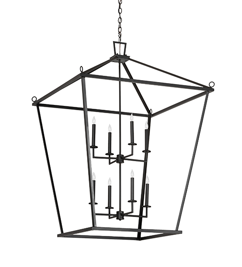 A sophisticated architecturally styled fixture is designed with a pizazz that is unique, fresh and stylish. Give your decor an extra edge with this breathtaking fixture, which is highlighted with a solid structure that surrounds 8 complementary faux candlelights perched on smooth bobeches that provide beautiful ambient illumination. The hardware and frame are featured in a handsome Flat Black finish. Overall height ranges from 54 to 125 inches as chain length can be easily adjusted in the field. The Kitzi Tapered Pendant is featured in our American Made, American designed, handcrafted Transitional Lighting Collection. Manufactured in Yorkville, New York. UL and cUL listed for dry and damp locations.