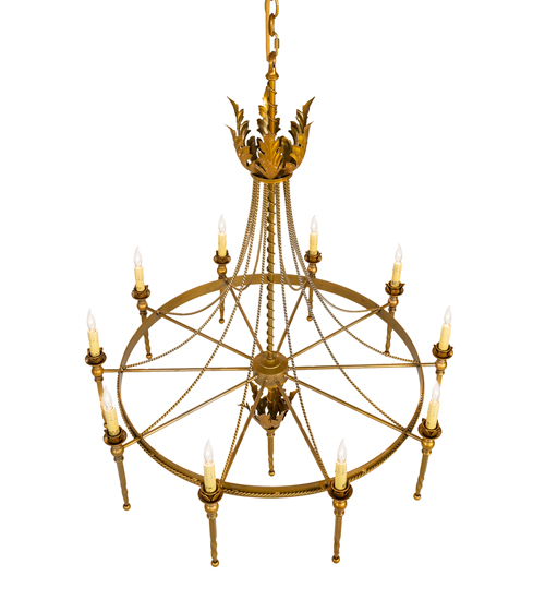 A rich luxurious beauty. Amaury blends classic and timeless styling. This chandelier is the perfect choice for today’s interiors and adds a finishing touch to living areas, entryways, lobbies and other spaces. 10 Ivory faux candlelights are perched on bobeches with stunning ballpoint finials and adorned with rope-liked trim and Acanthus leaf accents in a Transparent Gold finish. The overall height of the chandelier ranges from 54 to 102 inches as the chain length can be easily adjusted in the field to accommodate your specific lighting application needs. Handcrafted in our 180,000 square foot manufacturing facility in Yorkville, New York. Custom styles, sizes and designs available. UL and cUL listed for dry and damp locations.