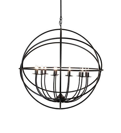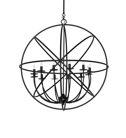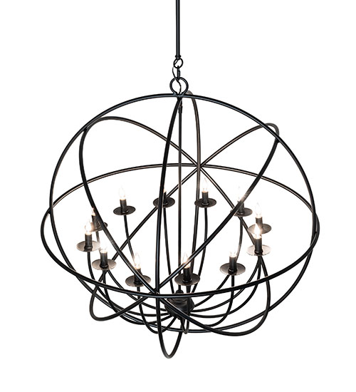 Like a complex gyroscopic structure, Solar Black finished metal rings create a unique curvature pattern that evokes the illusion of revolutionary motion like a spinning gimbal rotating on its axis. The orbed frame wraps around 12 complementary faux candlelights perched on matching bobeches. The overall height ranges from 43 to 196 inches, and the chain easily adjusts in the field. The fixture is ideal for illuminating dining tables, lobbies, entryways and other residential, hospitality and commercial spaces from Cape Canaveral, Florida, to Houston, Texas.. The Atom Enerjisi Chandelier is featured in our American-made, American-designed, handcrafted Atom Lighting Collection, which is manufactured in Yorkville, New York. UL and cUL listed for dry and damp locations.