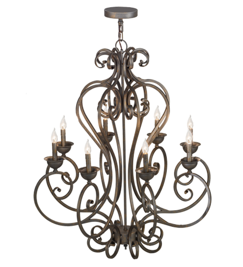 Beauty and grace come to light with this elegant chandelier highlighted with an elaborate Hand-Forged Iron Scrollwork design. 8 Complementary faux candlelights are perched on distinctive bobeches featured in a tasteful French Bronze finish. This classic decorative lighting fixture is perfect to illuminate entryways, lobbies and other rooms where you want to make a design statement. Handcrafted by highly skilled artisans in our 180,000 square foot manufacturing facility in Yorkville, New York. The number of candlelights, metal finishes and fixture sizes can be customized to meet your lighting needs. UL and cUL listed for damp and dry locations.