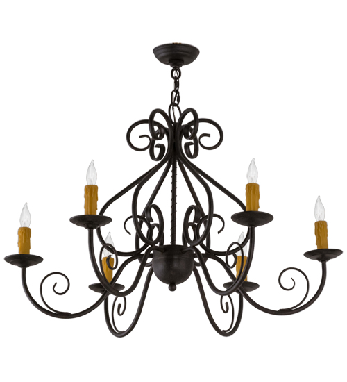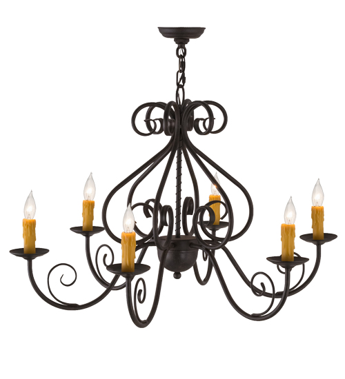 A sumptuous decorative design featured in a Chestnut finish creates the centerpiece of any room. Elaborate arms, scrolled accents, and six bobeches embrace faux candlelights and add a touch of elegance and warm ambient lighting to your interiors. The frame and luxurious design evoke a rich, lustrous charm. Crafted by hand in our 180,000 square foot manufacturing facility in Yorkville, New York. This fixture is available in custom sizes, styles and colors, and with dimmable, energy efficient lamping options such as LED. UL and cUL listed for dry and damp locations.