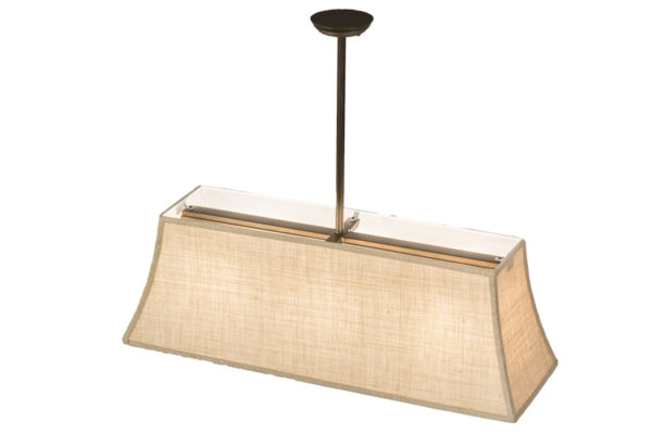 Designed with sleek and stylish curve appeal, Nadine is a sophisticated lighting design that embodies highly stylized lines and pristine clarity. This handsome Hard Backed Burlap pendant is custom crafted with Antique Copper finished hardware. Curate your room with this high-styled oblong fixture, which is ideal for illuminating billiard tables, islands, counters, bars and other spaces. Impeccably custom crafted in the USA, the pendant is available in custom sizes, designs, colors and dimmable energy efficient lamping options such as LED. This fixture is UL and cUL listed for dry and damp locations.