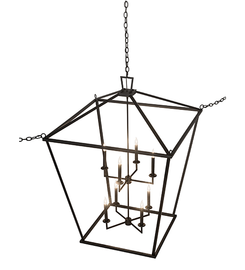 A sophisticated architecturally styled fixture is designed with a pizazz that is unique, fresh and stylish. Give your decor an extra edge with this stunning pendant, which projects beautiful ambient illumination from 12 Amber faux candlelights. Handcrafted in the USA, Kitzi offers a Black finished tapered metal structure that includes 4-anti-sway chains & wall hardware to accommodate windy conditions. Handmade in our 180,000 square foot manufacturing facility in Yorkville, New York Available in custom sizes, styles and finishes, as well as dimmable energy efficient lamping options such as LED. UL and CUL listed for dry and damp locations.