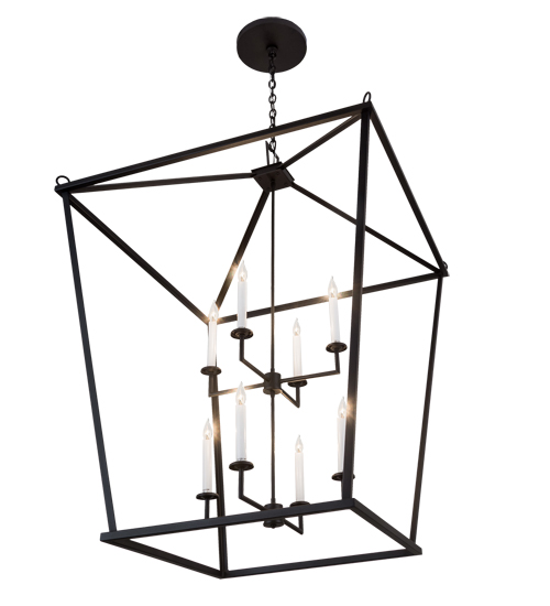 A sophisticated architecturally styled fixture is designed with a pizazz that is unique, fresh and stylish. Give your decor an extra edge with this breathtaking fixture, which is highlighted with a tapered metal structure. Beautiful ambient illumination is delivered by 8 Amber faux candlelights. The hardware and frame are featured in a handsome Texture Black finish. Handmade in our 180,000 square foot manufacturing facility in Yorkville, New York Available in custom sizes, styles and finishes, as well as dimmable energy efficient lamping options. UL and CUL listed for dry and damp locations.