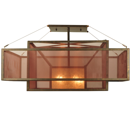 Designed with bold geometric styling, the Quadrato Umador ceiling fixture provides the perfect lighting design to illuminate and enhance the beauty of transitional and contemporary settings. 2 Frames embracing Coffee colored Textralite envelope an Amber Mica cube shaped diffuser. This unique fixture is enhanced with all hardware finished in Gilded Tobacco. The 36-inch fixture is ideal for a variety of residential, hospitality and commercial spaces. Custom crafted in the USA, this fixture is available in custom sizes, styles, colors and lamping options such as LED. This fixture is UL and cUL listed for dry and damp locations.