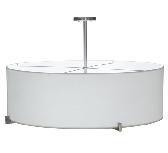 Designed with a curved profile and a clean architectural look, this appealing and versatile ceiling fixture reveals a sophisticated aesthetic. This pendant features a White Textrene shade enhanced with a Statuario Idalight bottom diffuser. The hardware, frame and crossbar design are featured in a Nickel powdercoat finish. Handcrafted by highly skilled artisans in our manufacturing facility in Upstate New York, this transitional styled pendant is available in a wide range of custom choices including various designs, colors, sizes and dimmable energy efficient lamping options such as LED. This pendant is UL and cUL listed for damp and dry locations.
