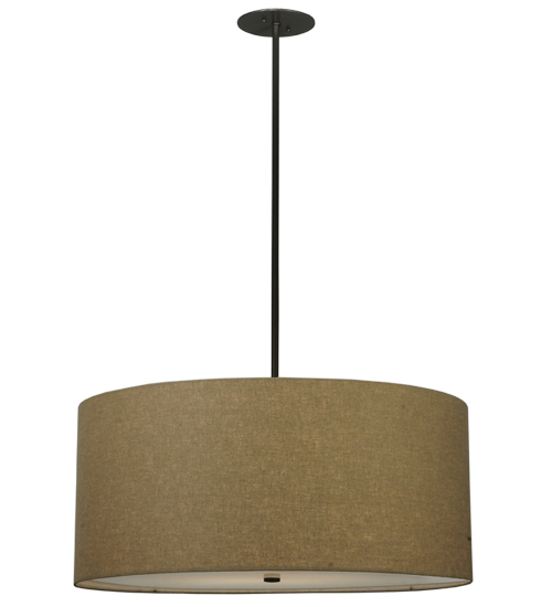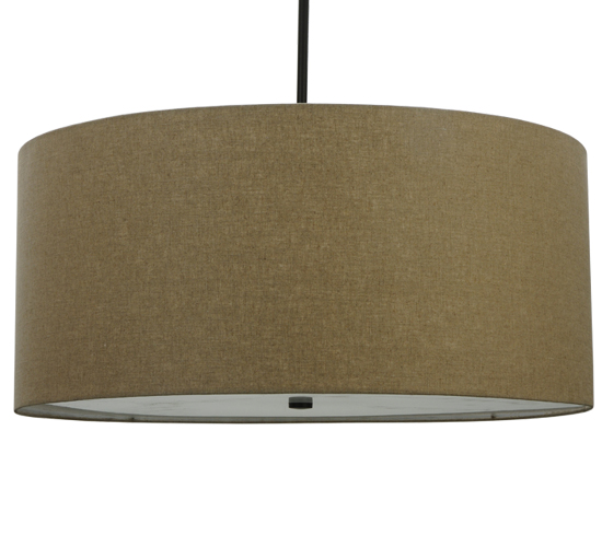 Designed with a clean round profile that fits into a variety of residential and commercial settings, this ceiling fixture defines a distinctive casual charm. The hardware is featured in a Timeless Bronze finish and embraces a Brown Silk shade which was crafted from customer-supplied materials. Handcrafted in the USA, this pendant is available in custom colors, styles and sizes, as well as dimmable energy efficient lamping options such as LED. This fixture is UL and cUL listed for damp and dry locations.
