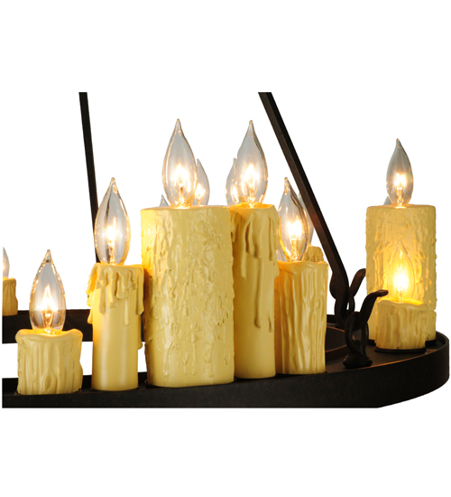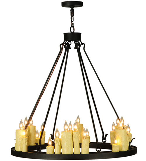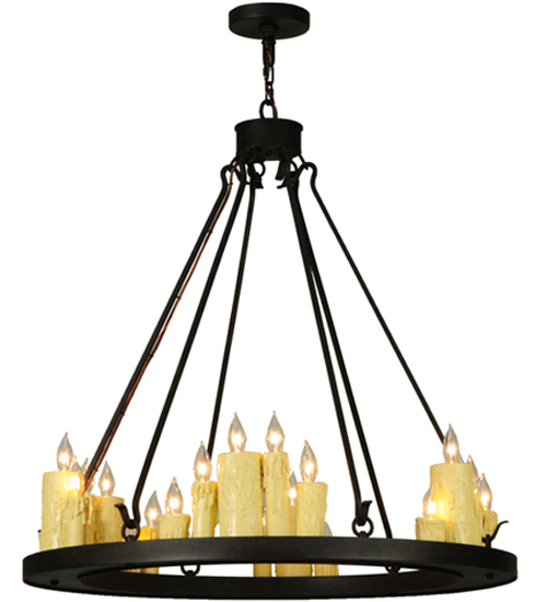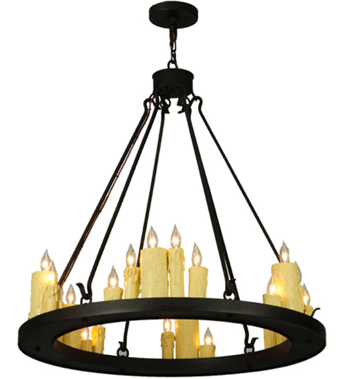 Create a warming, welcoming effect with this distinctive fixture for an entryway, grand dining room or lobby. This exquisite chandelier features the charm of 24 Ivory faux candlelights paired with the strength of a solid steel ring shaped frame featured in a Chestnut finish. Custom crafted by highly skilled artisans in our 180,000 square manufacturing facility in Yorkville, New York. Available in custom sizes, styles and finishes. UL and cUL listed for damp and dry locations.