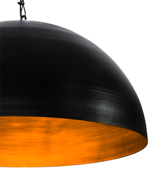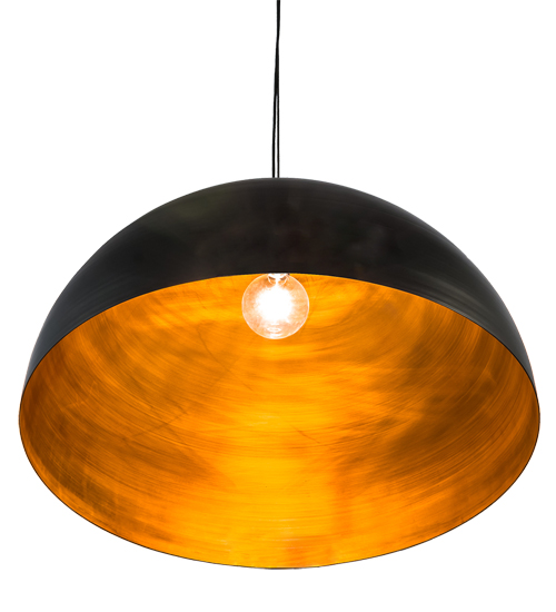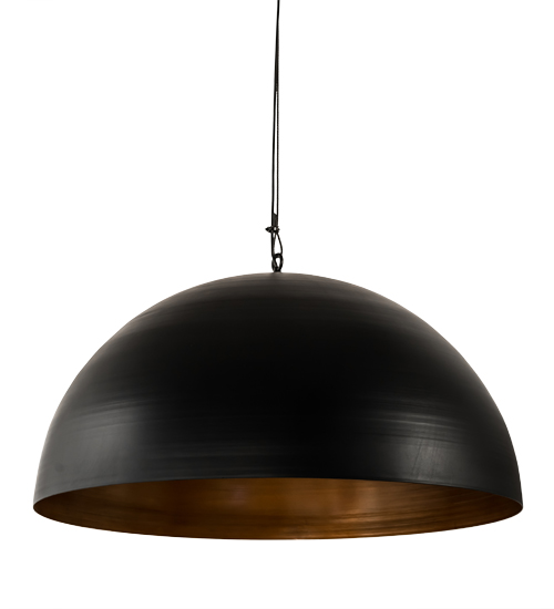 A dramatically styled pendant, Gravity features a dome-shaped shade that is hand finished in Solar Black and strikingly set on the outer surface, amazingly contrasting against a Vintage Copper internal metallic finish. The richly appointed interior results in a warm, burnished glow. Handcrafted by highly skilled artisans in our 180,000 square foot manufacturing facility in Yorkville, New York, this fixture is offered with custom styles, finishes and sizes and is available with dimmable LED and other energy efficient lamping options. The pendant is UL and cUL listed for damp listings.