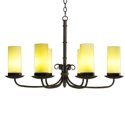 Blending the new traditional and transitional styles with flawless execution. This classic silhouette is timeless and can be placed in an array of spaces, including residential dining rooms and entryways from Amherst, Massachusetts, to Norfolk, Virginia, to Louisville, Kentucky. The Chandelier is crowned with six Ivory Idalight Cylindre Shades on bobeches featured in a Coffee Bean finish. The overall height ranges from 27.5 to 87.5� inches, as the chain length can be easily adjusted in the field to accommodate your specific lighting application needs. The Atria 6 Light Oblong Chandelier is featured in our American-made, American-designed, handmade Transitional Lighting Collection and manufactured in Yorkville, New York. The fixture is UL and cUL listed for dry and damp locations.