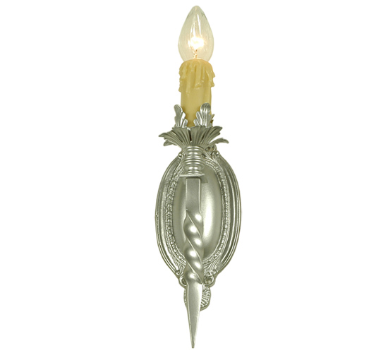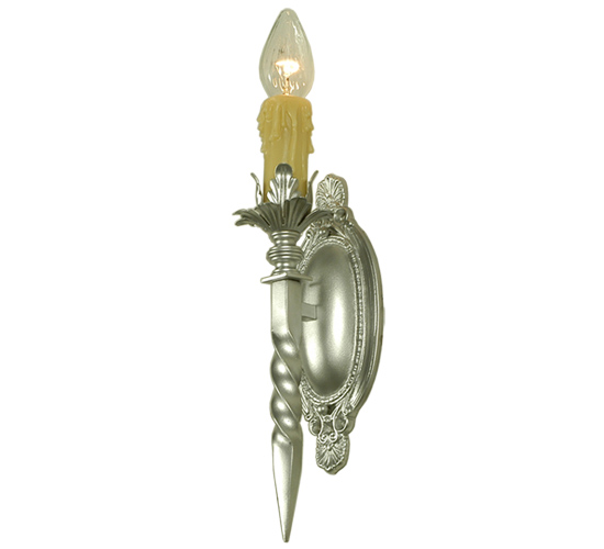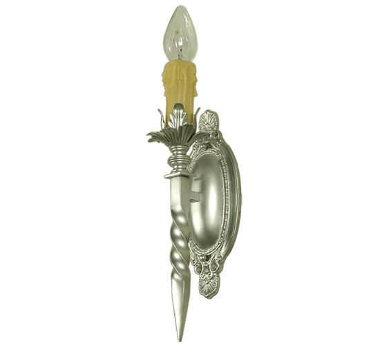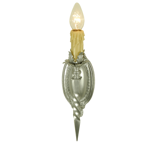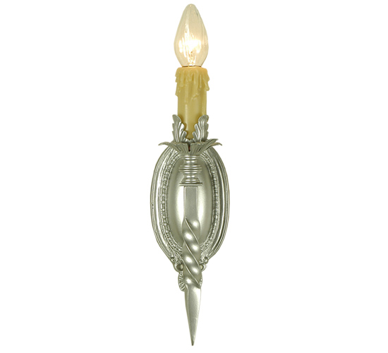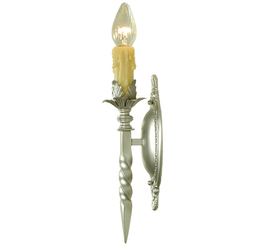 Beauty and grace come to light with this elegant ADA Compliant wall sconce highlighted with an elaborate scrollwork design. An Ivory faux candlelight is perched on a distinctive bobeche featured in a Nickel powder coat finish. Perfect to illuminate hallways and other rooms in fine homes, hotels, restaurants and other residential and commercial spaces. Handcrafted in our 180,000 square foot manufacturing facility in the USA, Coronel is available in a variety of custom sizes, finishes and dimmable energy efficient lamping options such as LED. The wall fixture is UL and cUL listed for damp and dry locations.