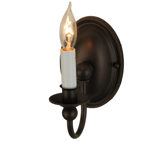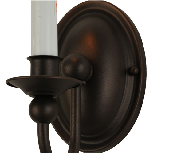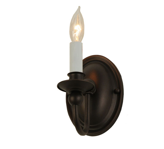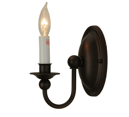A traditional single candlelight design is offered with a curved arm and oval back plate hand finished in Mahogany Bronze. Multiple candlelight fixtures are also offered in a variety of finishes and styles. Ideal for a variety of residential, restaurant and commercial applications. The simple, gracefully designed sconce is handcrafted by artisans at the company’s manufacturing facilities in Upstate New York.