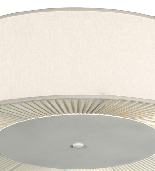 An architectural style for today’s interiors. This ceiling fixture features a White Textrene shade with a matching pleated interior. The fixture is enhanced with a Statuario Idalight bottom diffuser. The hardware is featured in a White powder coat finish. Made to Order in our 180,000 square foot manufacturing facility in Yorkville, New York. Customize shade colors, metal finishes and fixture sizes. UL and cUL listed for dry and damp locations however we do not recommend installing it in spaces that experience a large amount of moisture due to the fabric shade.