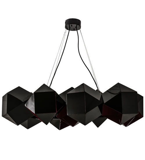 A stunning, dramatic lighting fixture that blends innovation with modern aesthetics, Vierzehn features nine 14-sided geometric elements designed with an opening for perfect ambient illumination directed in a variety of directions. Each solid steel element features a tantalizing combination of Mirror Black and Striking Violet finishes. Handcrafted in the USA, the fixture is available in custom sizes, colors and styles, as well as dimmable energy efficient lamping options. The pendant is UL and cUL listed for damp and dry locations.