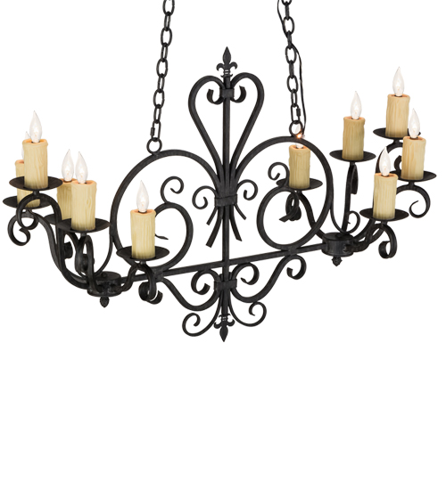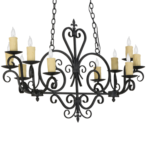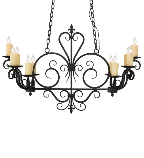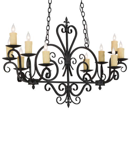 Rich charm and elegance come to light with this Kenneth chandelier. This fixture is designed as a dramatic centerpiece for an entryway, lobby or any other room where you want to make a design statement. This enchanting chandelier features 10 Ivory faux candlelights perched on bobeches, with Hand-Forged Iron scrolled arms and accents in an Antique Iron Gate finish. The overall height of this chandelier ranges from 34 to 59 inches as the chain length can be easily adjusted in the field to accommodate your specific lighting application needs. Custom crafted in our 180,000 square foot manufacturing facility in Yorkville, NY. Lens colors, metal finishes and sizes can be customized to meet your needs. UL and cUL listed for damp and dry locations.