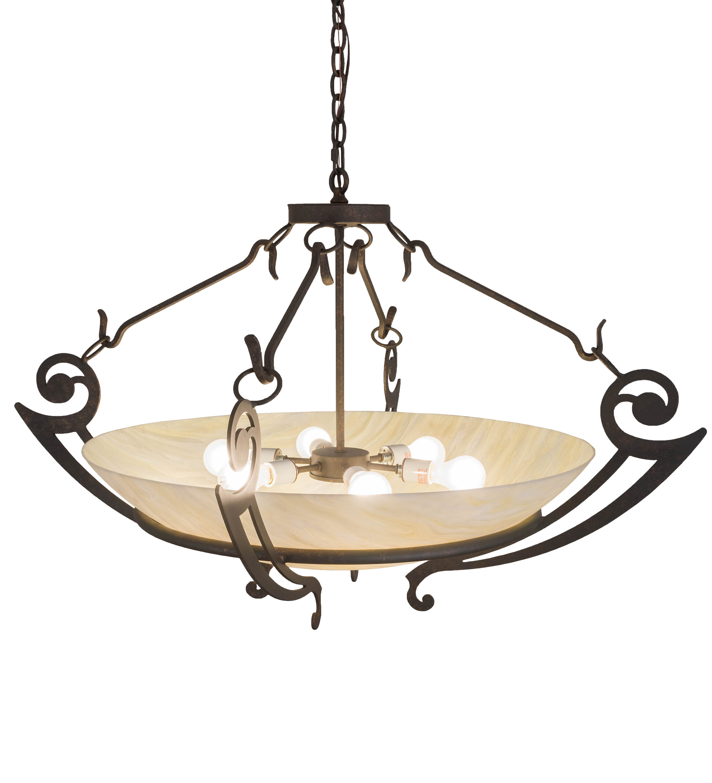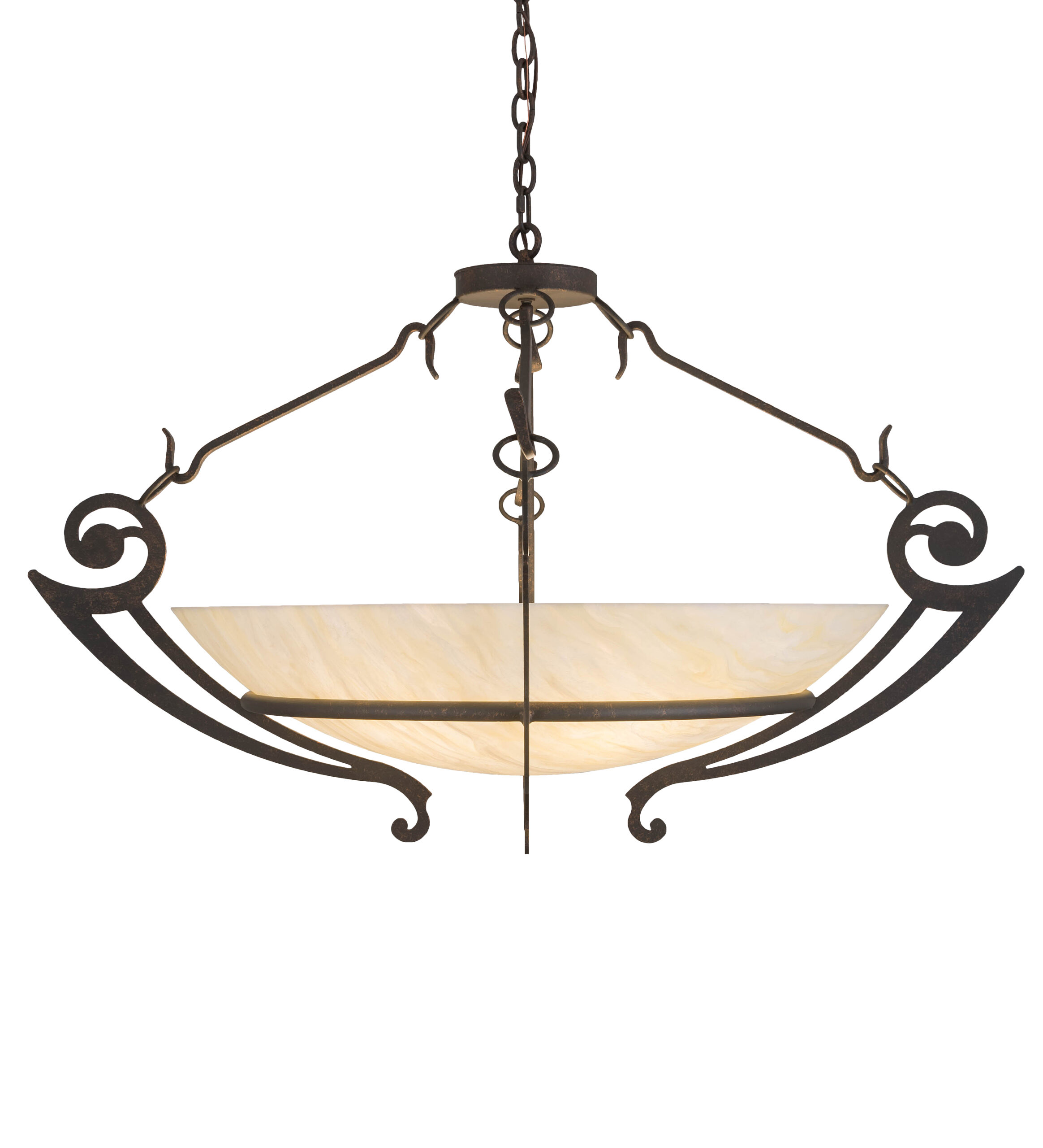 For a sophisticated, artistic look that will add warmth and flair to any space, Ceres is designed with stunning Creme Carrare Idalight and complemented with decorative scrolled arms and hardware finished in Timeless Bronze. The fixture is perfect for enhancing corridors, lobbies, living rooms and other areas in both residential and commercial environments. This 42-inch wide ceiling fixture is crafted by the highly skilled hands of our artisans in Yorkville, New York. Custom styles, sizes and colors are available, as well as dimmable energy efficient lamping such as LED. The pendant is UL and cUL listed for dry and damp locations.