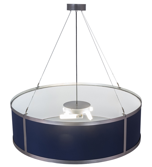 A sophisticated architectural look for today’s interiors, this handsome pendant reveals a Cadet Blue Textrene shade with a lower diffuser offered in White Idalight. Stunning detailing aesthetics are displayed with decorative trim and formal lines, as well as hardware, accentuated in a stunning Brushed Nickel finish. Ideal for a conference room, foyer, lobby or other large spaces, this fixture is custom crafted in the USA. This stylish fixture uses energy efficient compact fluorescent lamps (CFLs) and a ballast that accommodates systems ranging from 120 volts to 277-volts in large commercial settings. The pendant is UL and cUL listed for damp and dry locations.