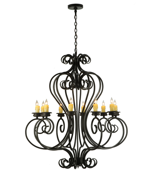 Beauty and grace come to light with this elegant chandelier. Fernando features an elaborate Hand-Forged Iron Scrollwork design. 10 Ivory faux candlelights are perched on distinctive bobeches featured in a Timeless Bronze finish. Perfect to illuminate entryways, lobbies and other rooms in fine homes, hotels, restaurants and other hospitality and commercial spaces. The overall height ranges from 53 to 124 inches as the chain length can be easily adjusted in the field to accommodate your specific lighting application needs. Handcrafted in our 180,000 square manufacturing facility in Yorkville, New York. The candlelights, metal finishes and fixture size can be customized to meet your needs. UL and cUL listed for damp and dry locations.