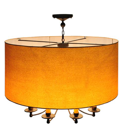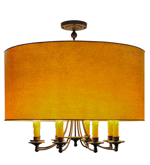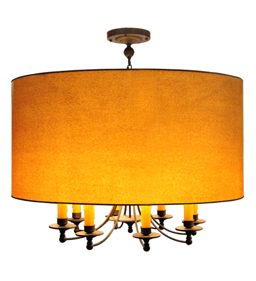 A sophisticated pendant is designed with a stunning look that is unique, fresh and stylish. Give your decor an extra edge with this breathtaking lighting design. The fixture is highlighted with a curvaceous Parchment Shade evoking brilliant ambient illumination. Muirfield is offered in a Classic Rust finish. The overall height of this pendant ranges from 36 to 71 inches as the chain length can be easily adjusted in the field to accommodate your specific lighting application needs. Custom crafted in our 180,000 square foot manufacturing facility in Yorkville, NY. UL and CUL listed for dry and damp locations however we do not recommend installing it in spaces that experience a large amount of moisture due to the fabric shade.