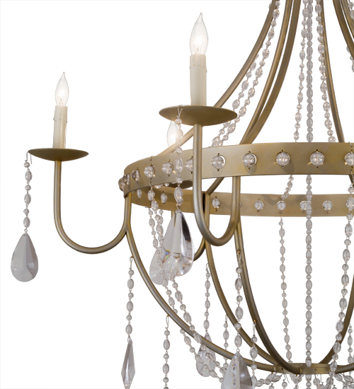 Graceful elegance and luxurious sophistication are reflected in this alluring lighting masterpiece. This lovely chandelier renders an exquisite design featured in a Custom finish and adorned with a multitude of scrolled accents, crystal beads and large crystal pendalogs. Delicate orbed accents adorn the complementary curved band. Azaleia renders 6 Ivory faux candlelights perched on bobeches and designed for beautiful ambient light. Hand detailed American craftsmanship is perfected by years of time honored artistry in company’s manufacturing facility in Upstate NY. Custom sizes, styles, colors and dimmable energy efficient lamping options offered. UL and cUL listed for dry and damp locations.