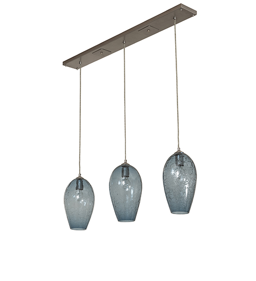 Capture an elegant, artistic aesthetic with a stunning island pendant that adds a touch of color and style to any space. The ceiling pendant features three mouth-blown Clear Crackle Glass elements with a Sapphire Tint. The ceiling fixture is enhanced with a Brushed Nickel finish. Install this pendant across bars, dining tables, islands, and counters in homes, restaurants, hotels, pubs, nightclubs, and other spaces. This Crackle Orb 3 Light Island Pendant is included in our American-made, American-designed, handcrafted Art Glass Lighting Collection. The fixture is UL and cUL listed for dry and damp locations.