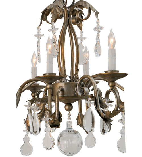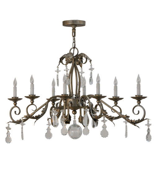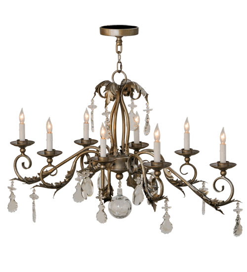 Inspired by the beauty and grace of ballrooms in renowned castles and mansions spanning the globe, Windsor features 8 White faux candlelights that are perched on bobeches with Acanthus Leaf Accents, Scrolled Arms and Crystal Pendalogs on a frame with hardware featured in an Antique Silver finish. The overall height of this chandelier ranges from 32 to 91 inches as the chain length can be easily adjusted in the field to accommodate your specific lighting application needs. Handcrafted in our 180,000 square foot manufacturing facility in the USA, this fixture is available in custom sizes, styles, and colors, as well as dimmable energy efficient lamping options. UL and cUL listed for damp and dry locations.