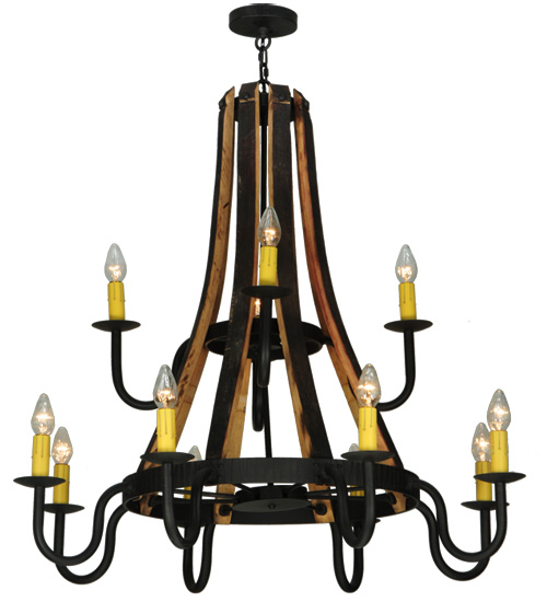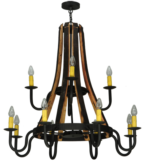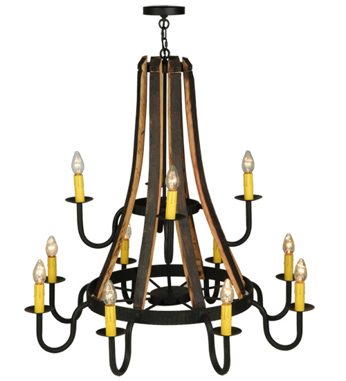 48″W Barrel Stave Madera 12 LT Two Tier Chandelier | 143858