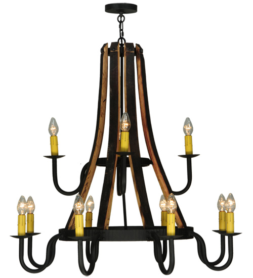 44″ Wide Barrel Stave Madera 12 Light Two Tier Chandelier | 253553