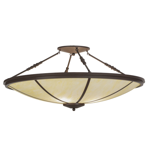A touch of warm opulence is blended with a clean architectural look. This ceiling fixture features a large Botticino Idalight diffuser, which is complemented with decorative accents, frame and hardware offered in a warm Cafe Noir finish. Energy efficient LED A19 medium based lamps supplied by the customer deliver energy savings and long life. Handcrafted by highly skilled artisans in our 180,000 square foot manufacturing facility in Yorkville, New York. Custom colors, styles and sizes are available. Dimmable energy efficient lamping options. UL and cUL listed for dry, damp and wet locations.