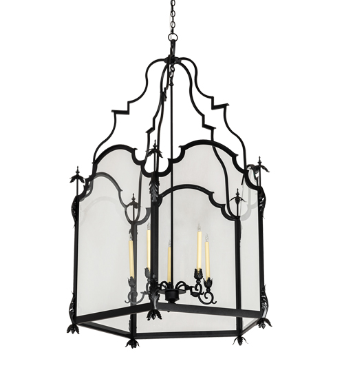 Utilizing a blend of timeless craftsmanship and classic design. The Lattimer Pendant brings home unsurpassed quality and shapely appeal. Evoking a dramatic effect, beautiful ambient light is projected through Clear Glass which reveals five Ivory faux candlelights featured within. This elegant pendant is enhanced with a Textured Black finish. Overall height ranges from 73 to 144 inches as the chain can be adjusted in the field. The Lattimer Pendant is featured in our American made, American designed handcrafted Traditional Lighting Collection. Manufactured in Yorkville, New York. UL and cUL listed for dry and damp locations.